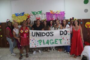 Os colaboradores também entraram no clima e levaram o tradicional Bloco do Piaget para a “avenida”, espalhando ainda mais animação, cores e sorrisos por toda a escola.
