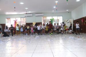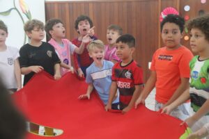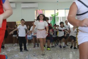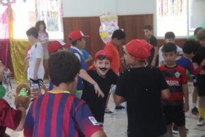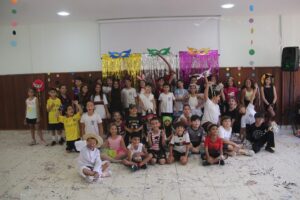 Na véspera do Carnaval, os alunos do Ensino Fundamental I participaram de uma animada celebração no auditório, com direito a marchinhas, brincadeiras, muita diversão e fantasias repletas de criatividade. A alegria tomou conta do ambiente e garantiu um momento inesquecível para todos.